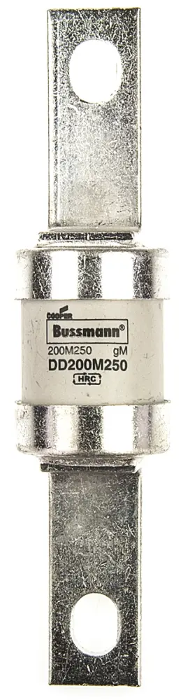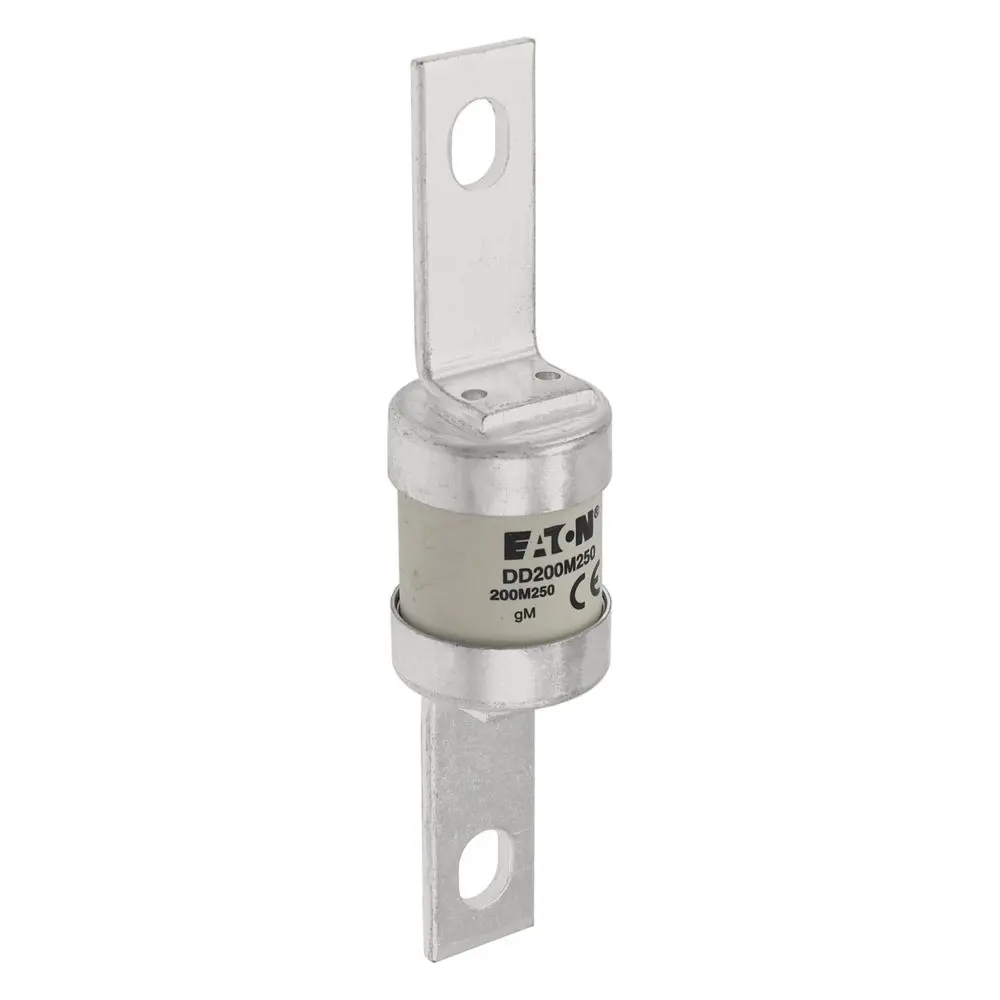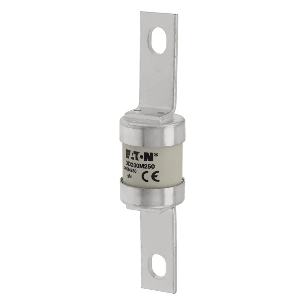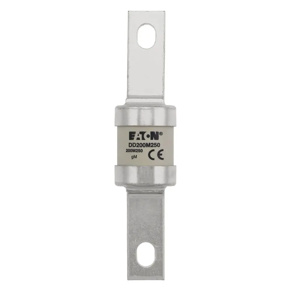 Fusible estándar británico de Eaton, capacidad de ruptura de 80 kA, tipo de etiqueta con perno central – DD200M250