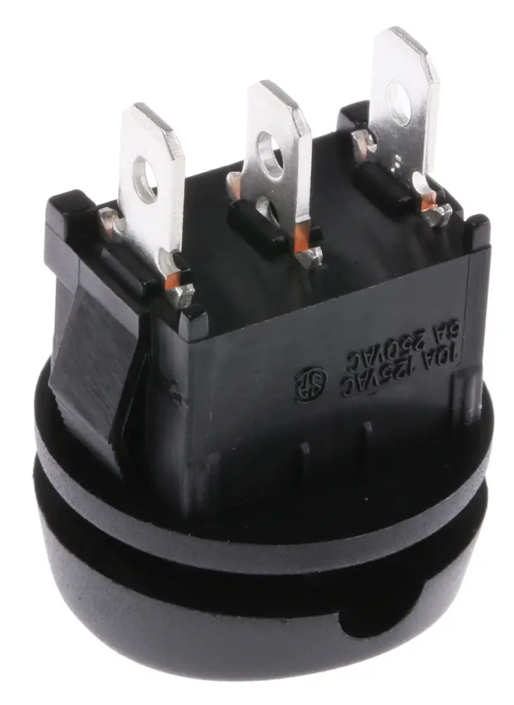 Interruptores negros de montaje por encaje a presión disponibles en SPST o SPDT