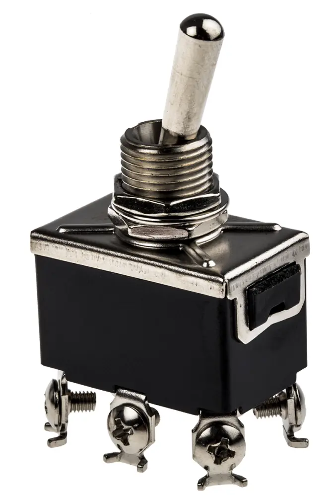 Se trata de un interruptor bipolar de dos vías de conexión, por lo que puede controlar dos dispositivos con una palanca. Esta palanca utiliza una función de enclavamiento, por lo que no es necesario sostenerla en su posición, manteniendo las manos libres para accionar otros controles.