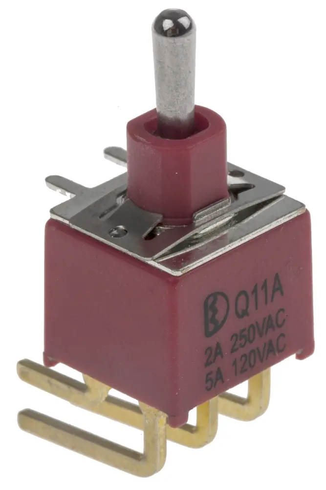 Serie RS con índice de protección IP67 de interruptores de palanca en miniatura de montaje en PCB con baja resistencia de contacto y disponibles con material de contacto de oro (Q) o plata (R). Los interruptores de palanca en miniatura de la serie RS tienen una resistencia de aislamiento mínima de 1000MΩ y una rigidez dieléctrica mínima de 1.000 Vrms a nivel del mar.