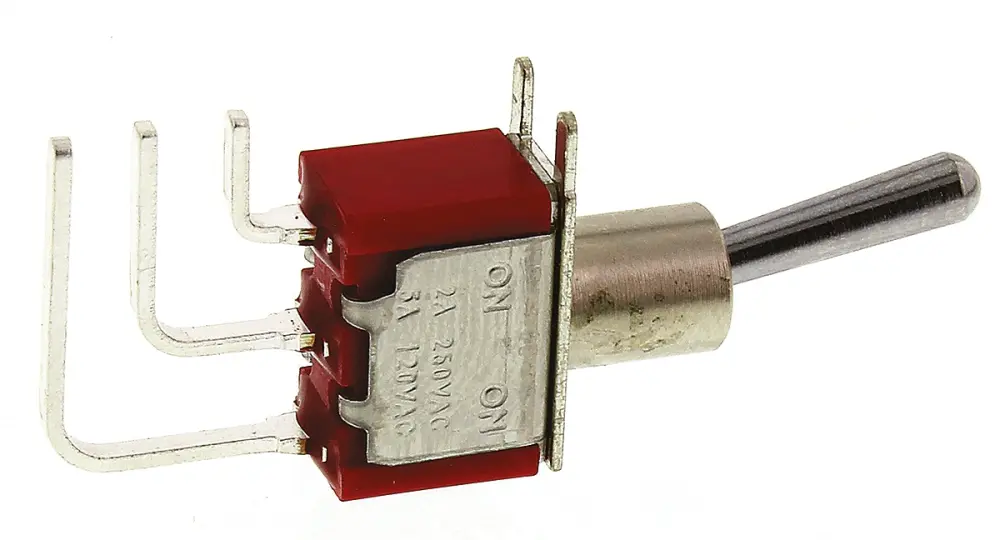 Serie RS de interruptores de palanca en miniatura de montaje en PCB con una resistencia de contacto baja y disponibles con material de contacto de oro (R) o plata (Q). Los interruptores de palanca en miniatura de la serie RS tienen una resistencia de aislamiento mínima de 1.000 MΩ y una rigidez dieléctrica mínima de 1.000 Vrms.