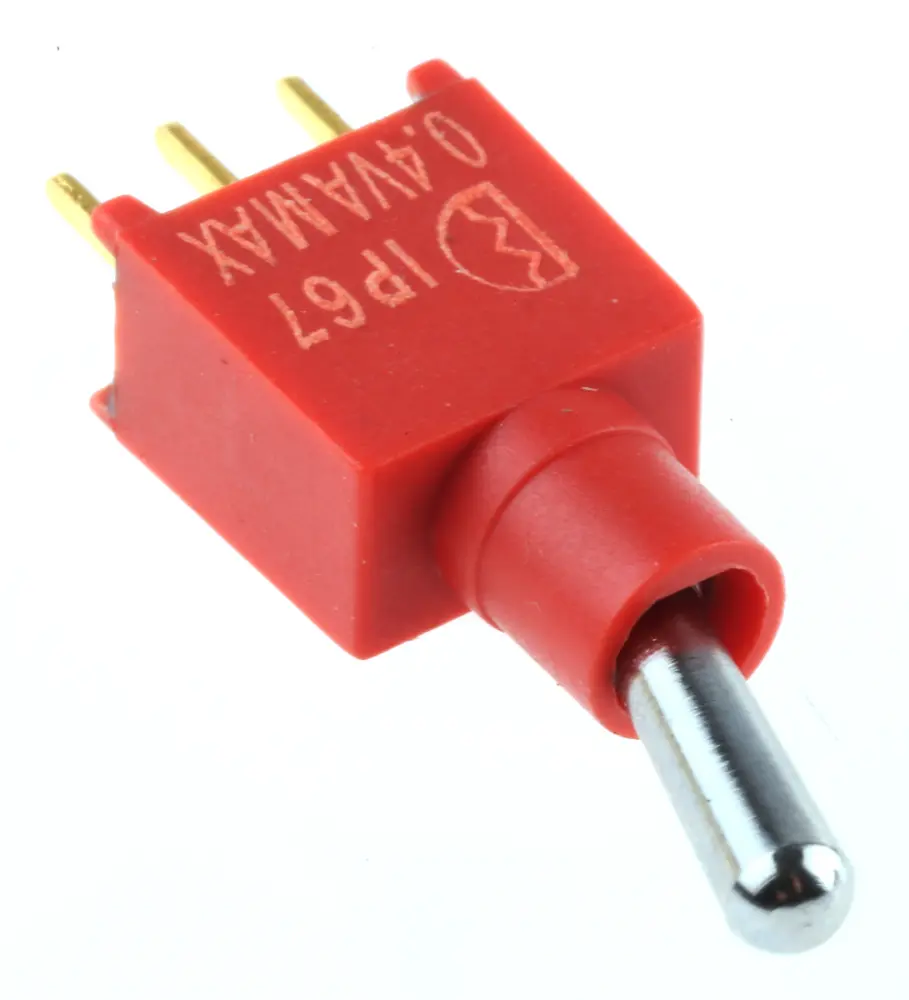 Serie RS de interruptores de palanca subminiatura con hermeticidad IP67 con una resistencia de contacto baja y disponibles con material de contacto de oro (Q) o plata (R). Los interruptores de palanca subminiatura de la serie RS tienen una resistencia de aislamiento mínima de 1.000 MΩ 500 V y una rigidez dieléctrica mínima de 1.000 Vrms al nivel del mar.