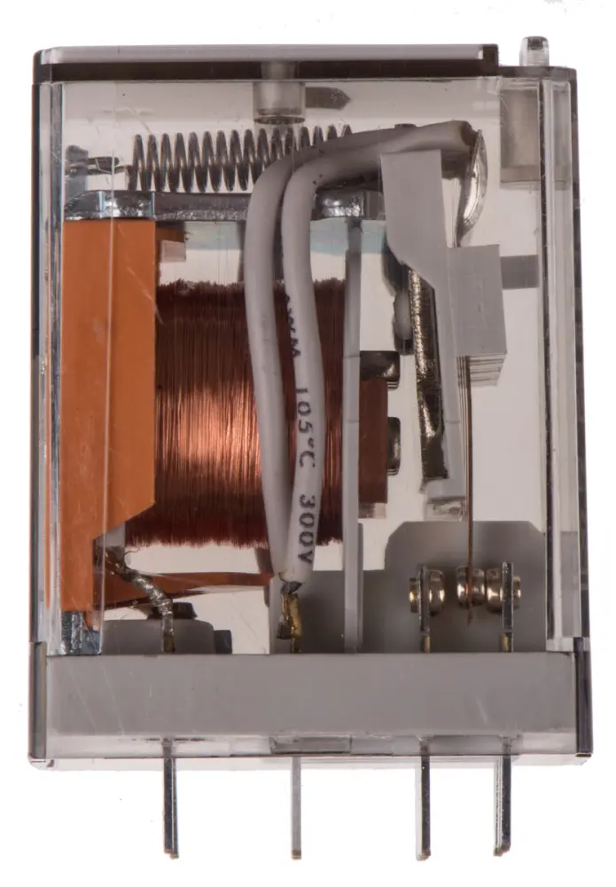 El relé está diseñado para un sencillo montaje en placa de circuito impreso con terminales de orificio pasante, lo que permite un rápido montaje e integración en los circuitos de control.