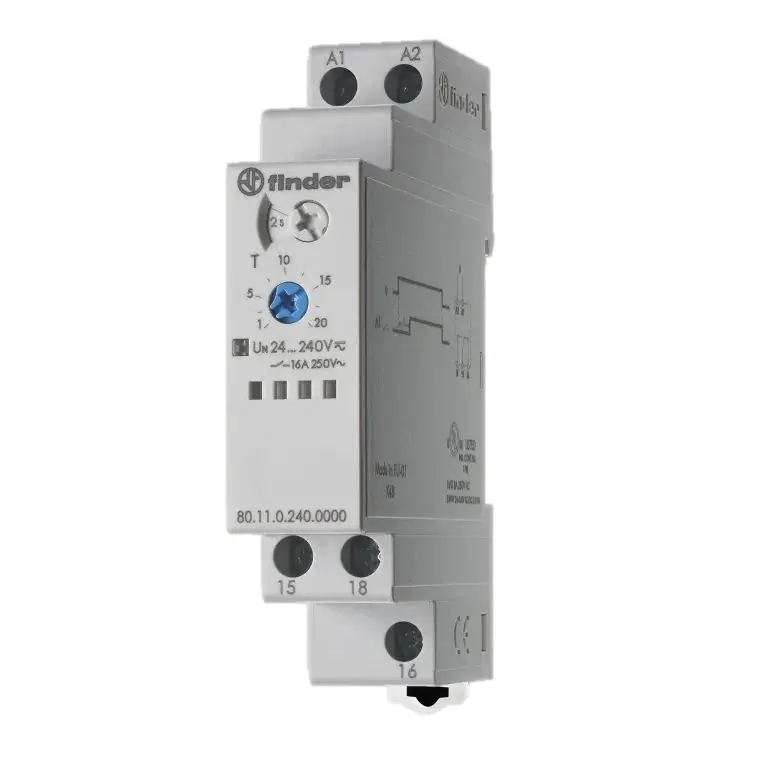 Relé temporizado Finder serie 80, tensión de alimentación de 24 a 240 V CA/CC, configuración de contactos SPDT – 80.11.0.240.0000