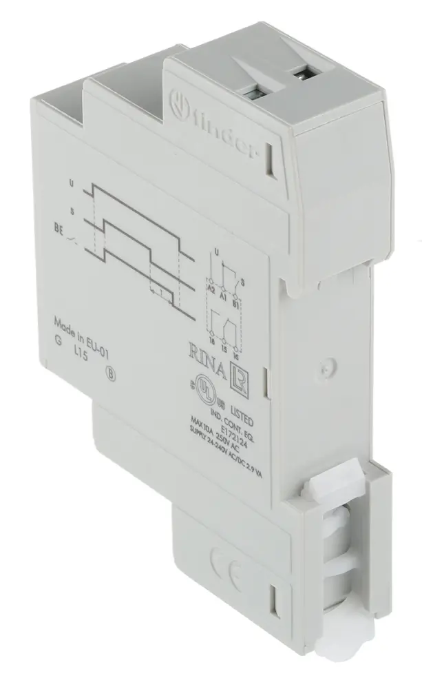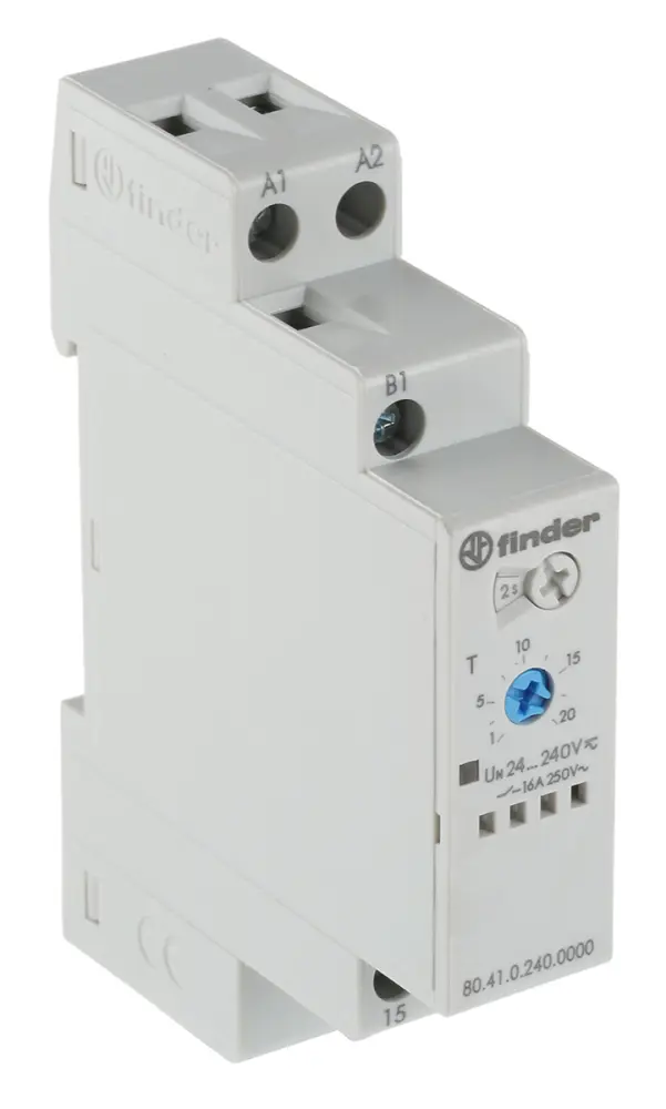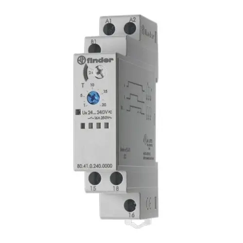 Relé temporizador Finder serie 80, tensión de alimentación de 24 a 240 V CA/CC, montaje en carril DIN – 80.41.0.240.0000
